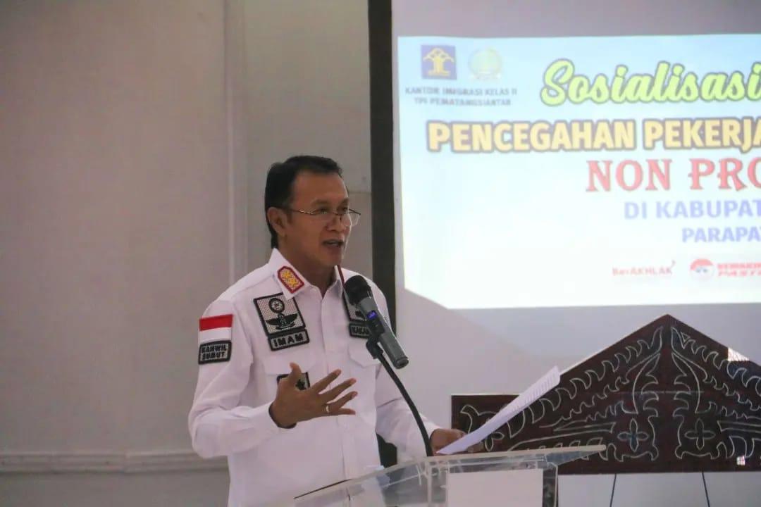 Kegiatan Sosialisasi yang diselenggarakan oleh Kantor Imigrasi Kelas II TPI Pematang Siantar ini mendatangkan narasumber Kepala Dinas Ketenagakerjaan Kabupaten Simalungun dan Badan Perlindungan Pekerja Migran Indonesia (BP2MI) Provinsi Sumut.
