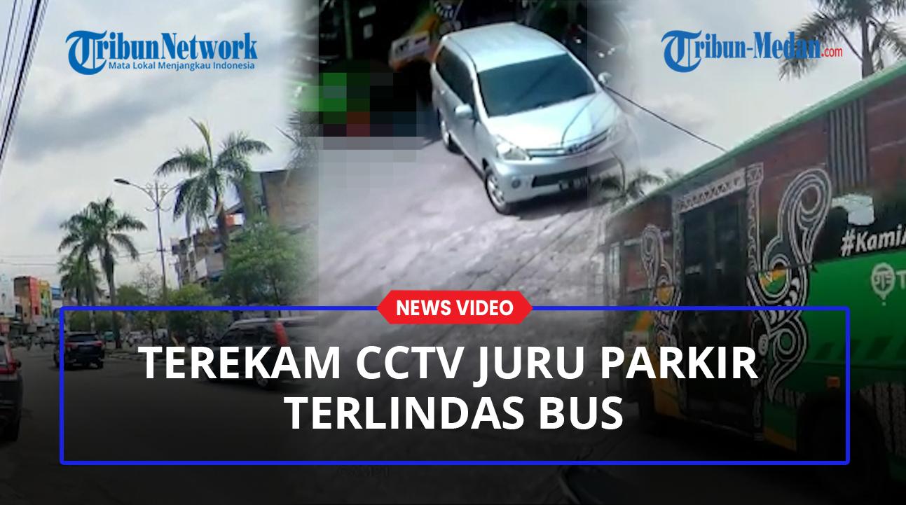 Seorang petugas parkir yang sedang bekerja terekam CCTV pengawas terlindas bus trans Metro Deli di Jalan Jamin Ginting Medan