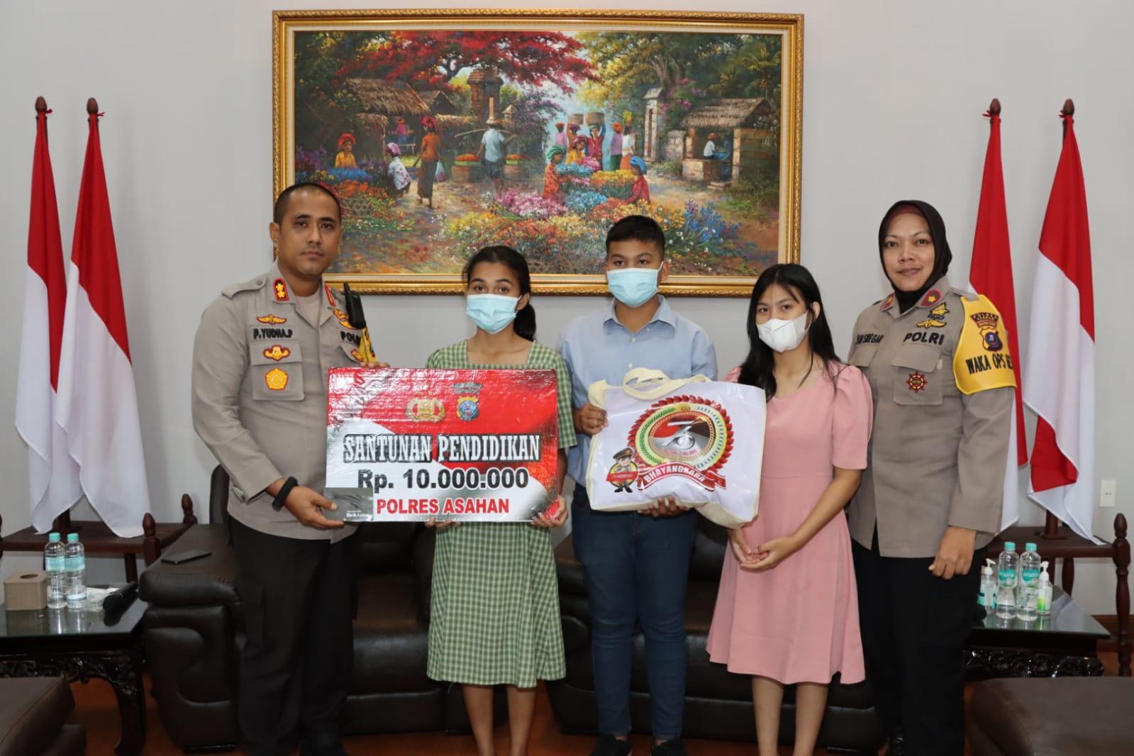 "Manakala ada sesuatu hal silahkan disampaikan kepada kami Polres Asahan. Selalu jaga kesehatan, semoga nanti cita-cita dan harapannya ke jenjang pendidikan yang lebih tinggi tercapai," kata Kapolres AKBP Putu Yudha Prawira, Sabtu (25/6/2022).