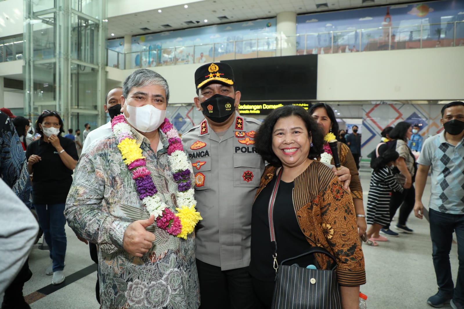 TRIBUN-MEDAN.COM, MEDAN -Kapolda Sumut Irjen Pol Drs RZ Panca Putra Simannuntak, MSi menyambut kedatangan Kontingen Pesparawi Sumut bertempat di Bandara Internasional Kualanamu, Senin (27/06/2022).