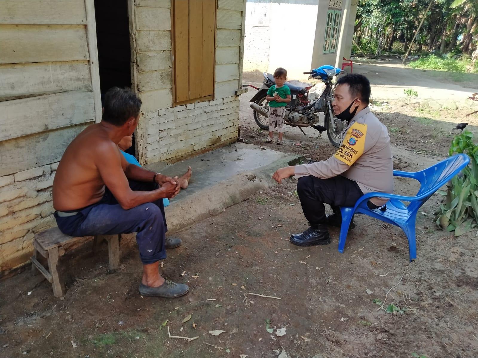 Terlihat Bripka M Irfan Fadillah mengunjungi rumah warga sebelum dilakukan bedah rumah. "Jadi kita sambang warga di Dusun III Desa Paritokan bernama Idris Syamsir Hasibuan beserta istri yang mendapat bantuan bedah rumah dari Pemdes Paritokan program pemerintah Sergai," kata Bhabinkamtibmas Polsek Dolok Merawan, Selasa (28/6/2022).