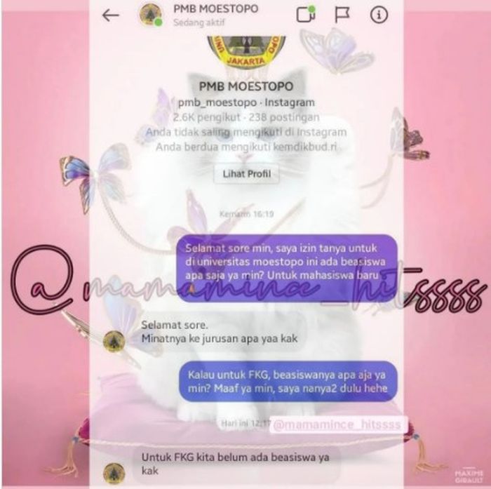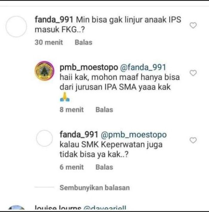 Masih dari akun Instagram yang sama, ternyata ada yang menanyakan perihal beasiswauntuk FKG.