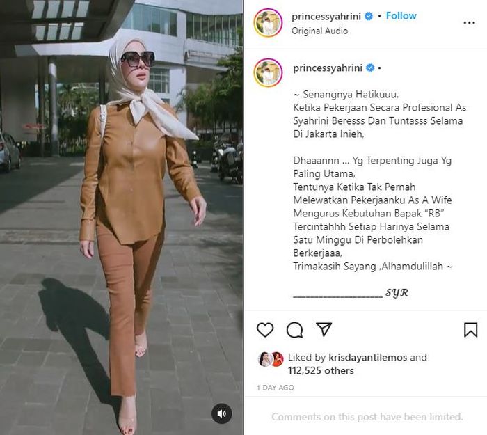 Hal itu bisa dilihat melalui akun Instagram pribadinya @princessyahrini, Kamis (30/6/2022).