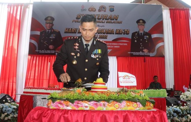 "Saya mengucapkan terimakasih maupun apresiasi yang setinggi-tingginya kepada seluruh insan Polri," kata Kapolres di sela syukuran pada puncak peringatan HUT Bhayangkara ke-76 di Lapangan Futsal Wichaksana Laghawa Mako Polres Tapsel, Selasa (5/7/2022).