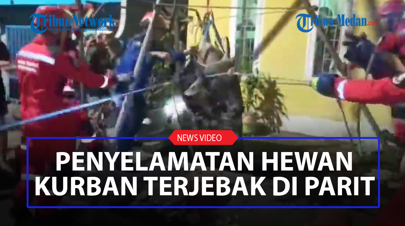 TRIBUN-MEDAN.COM - Beredar video detik-detik penyelamatan hewan kurban yang terjebak dalam parit, Sabtu (9/7/2022).