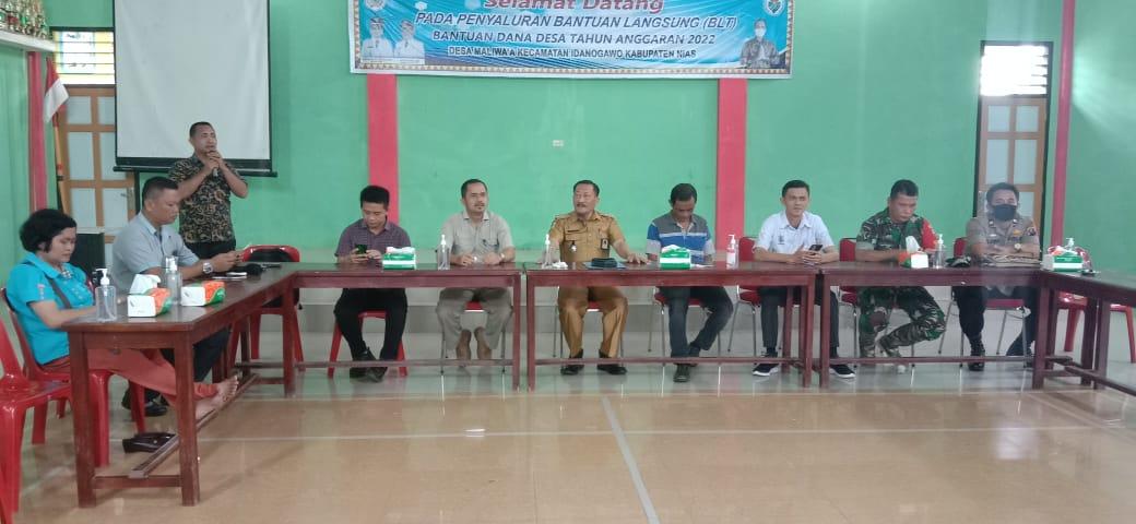 TRIBUN-MEDAN.com, GUNUNGSITOLI - Ps Kanit Binmas Polsek Idanogawo Aiptu D. Zebua, menghadiri sekaligus monitoring kegiatan penyaluran Bantuan Langsung Tunai Dana Desa (BLT-DD) Tahun 2022 yang dilaksanakan di Balai Desa Maliwa'a Kecamatan Idanogawo Kabupaten Nias, Senin (11/7/2022).