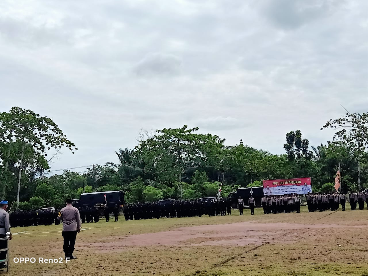 Apel pelepasan personil pasukan operasi mantap toba 2022 oleh Kapolres Indra dilaksanakan di Lapangan MAN 2 Binanga Kecamatan Barumun Tengah, Kabupaten Padang Lawas, Sumatera Utara, (Rabu (13/7/22).