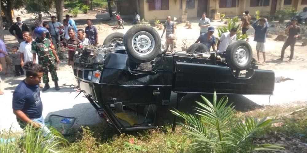 Mobil Mitsubishi L 300 itu terguling saat melintasi jalan yang menikung dan terbalik. Akibat peristiwa itu dua penumpang mobil Mitsubisi L300 mengalami luka.