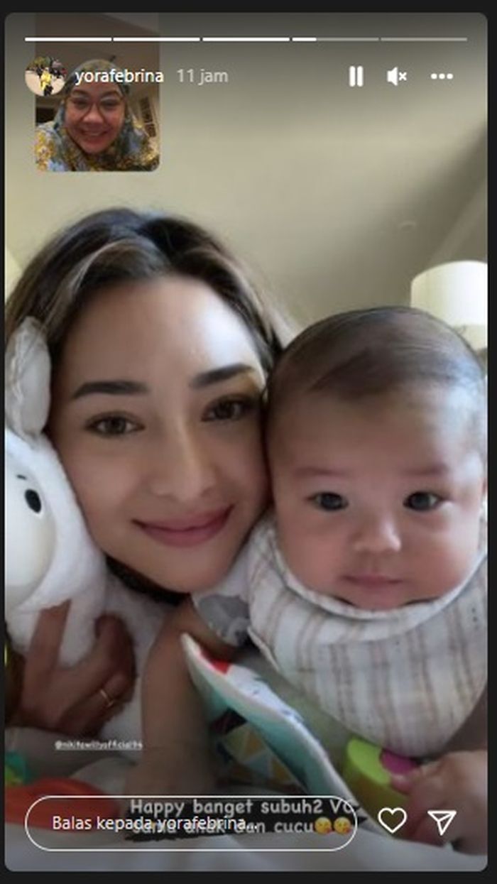Sementara itu, lewat postingan story Instagramnya, Yora Febrina baru saja menerima video call dari sang cucu tercinta.