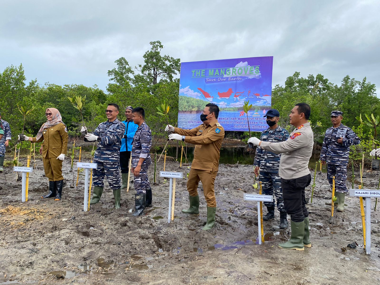 Satkowil Lanal Sibolga menggelar penanaman bibit Mangrove secara serentak di desa Labuhan Angin Kecamatan Tapian Nauli Tapteng, Selasa (26/7/2022) Pag