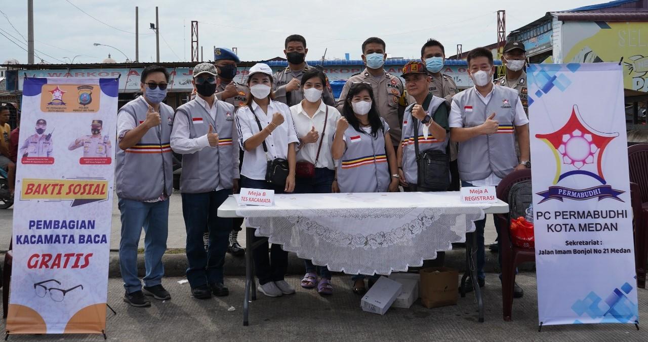 Bagikan Kacamata Baca Gratis, Bakti Sosial Permabudhi Bersama Polsek Percut Sei Tuan Diserbu Warga