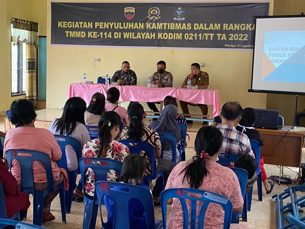 Mewakili Kapolres Sibolga, Kapoksek Sibolga Selatan Polres Sibolga AKP Bremer Hulu melaksanakan penyuluhan Kamtibmas dalam rangka TMMD ke 114
