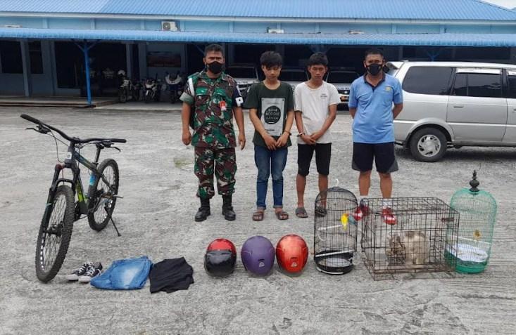 Dua maling tertangkap beraksi di kompleks TNI AU. Barang bukti yang didapati yakni, sepeda, helm, sarang burung, pakaian dan sepatu.