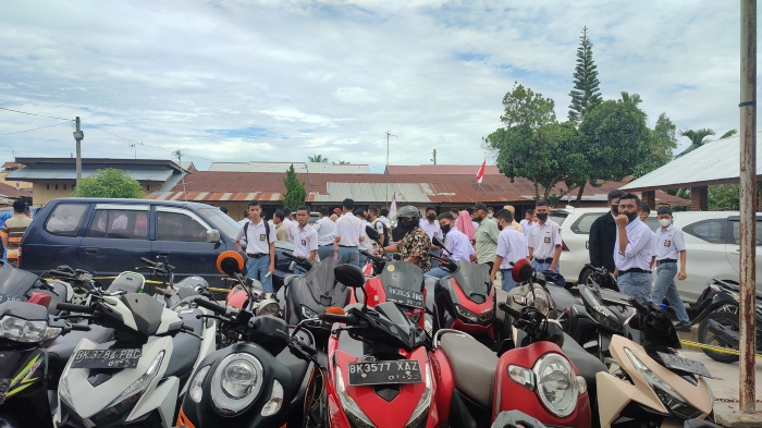 Sementara itu, untuk kendaraan sepeda motor milik siswa yang ditahan akan dikembalikan usai siswa menandatangani surat pernyataan dan juga membawa surat surat kendaraan.