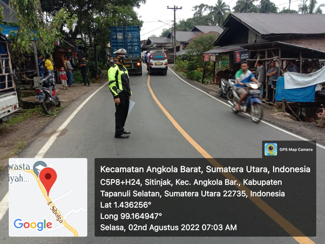 Personel Polres Tapsel melakukan pengamanan dan pengaturan lalu lintas pasca insiden kecelakaan di Jalan Km 15-16 Pasar Batang Toru-Kota Padangsidimpuan persisnya di Kelurahan Simatorkis, Kecamatan Angkola Selatan, Kabupaten Tapanuli Selatan (Tapsel), Selasa (2/8/2022).