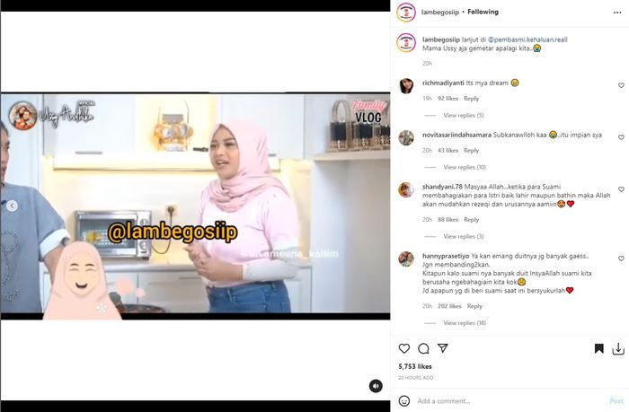 Hal itu terungkap dalam kanal Youtube Ussy Andhika Channel yang diunggah ulang oleh akun Instagram @lambegosiip pada Sabtu (06/08/2022).