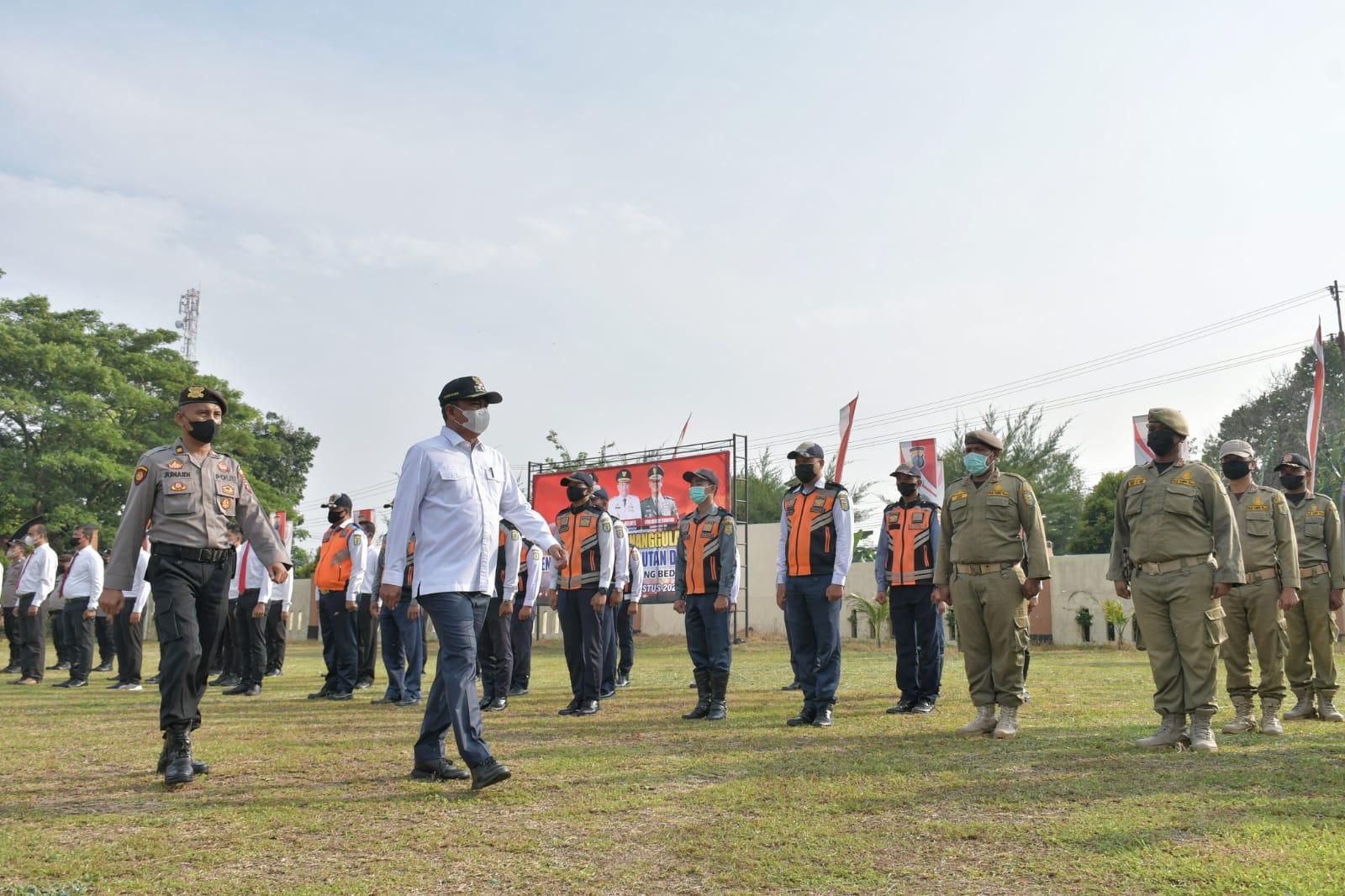 TRIBUN-MEDAN.COM, SERGAI - Bupati Serdang Bedagai Darma Wijaya pimpin apel kesiapan penanggupangan bencana kebakaran hutan dan lahan, di Mapolres Serdang Bedagai, Jumat (12/8/2022).