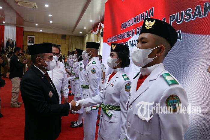Berita Foto: Gubernur Sumut Edy Rahmayadi Mengukuhkan 66 Paskibraka Sumut di Aula T Rizal Nurdin
