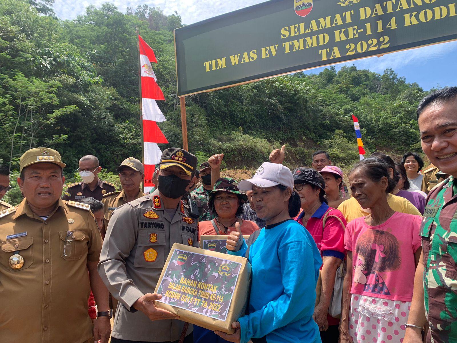 Selain memantau pelaksanaan TMMD Kodim 0211/TT, Tim Wasev TMMD juga menyempatkan diri untuk membagikan sembako kepada masyarakat sekitar, di Kelurahan Hutabarangan, Sibolga.