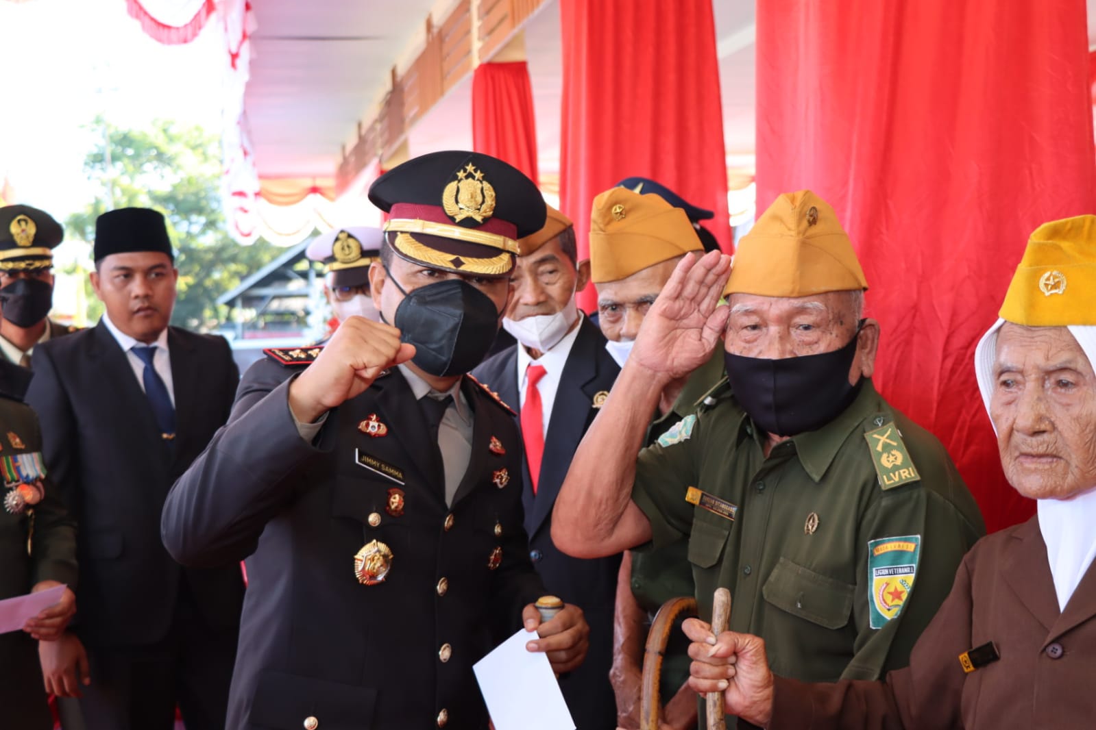 Kapolres Tapteng terpantau berbaur akrab dengan Legiun Veteran Republik Indonesia (LVRI) di sela-sela upacara HUT RI.