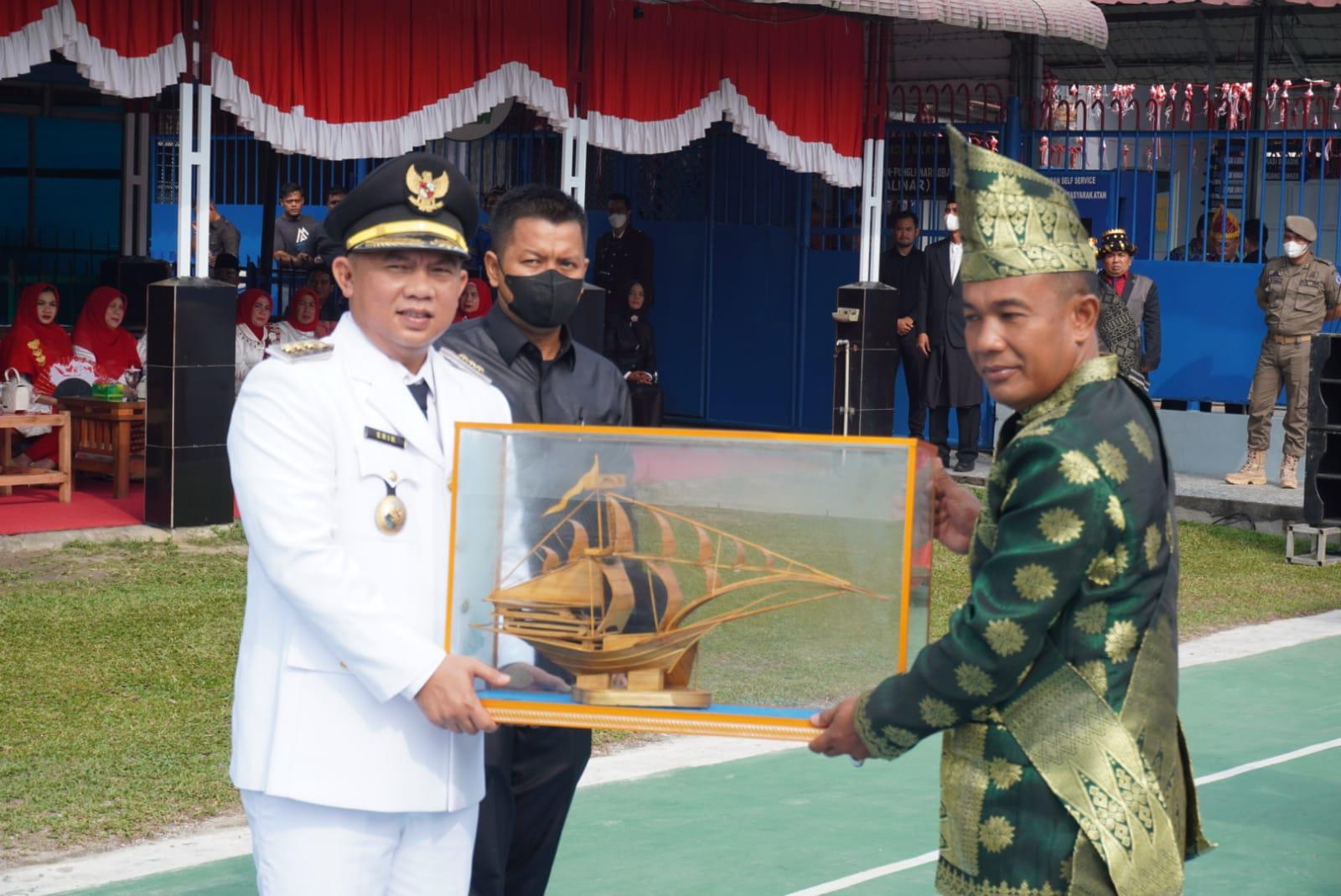 Bupati Labuhanbatu, Erik Adtrada selaku inspektur upacara membacakan sambutan Menteri Hukum dan HAM RI.