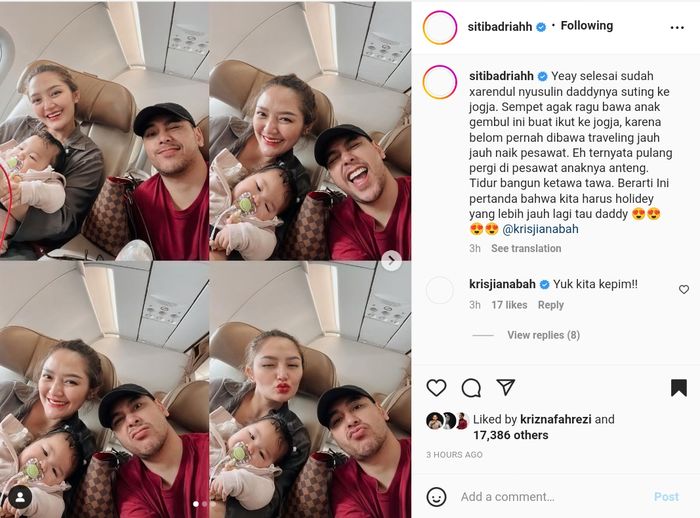 Lewat kolom komentar, Siti Badriah pun mengungkap sempat khawatir mengajak buah hatinya untuk travelling.