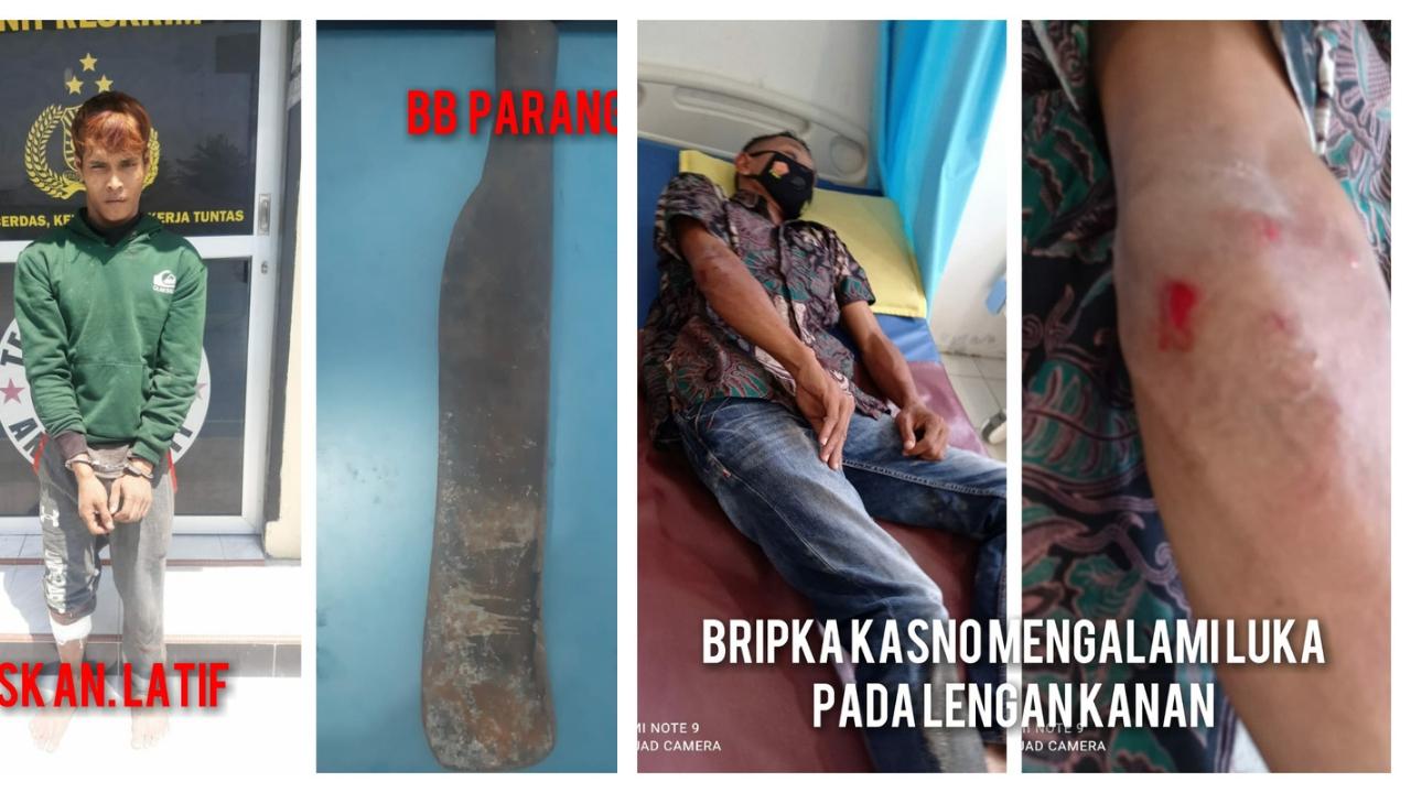 TRIBUN-MEDAN.com, BATUBARA - Latif (26) warga Jalan Sumatera, Desa Suka Jaya, Kecamatan Tanjung Tiram, Kabupaten Batubara nekat menciderai petugas Polsek Labuhan Ruku dengan menggunakan sebilah parang saat dirinya hendak diamankan, Jumat (19/8/2022).