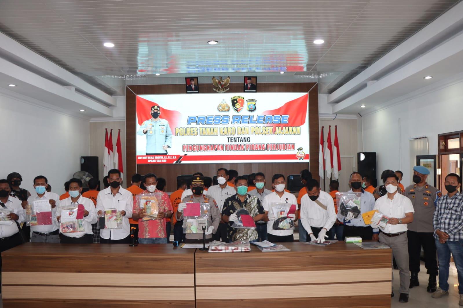Kapolres Tanah Karo AKBP Ronny Nicolas Sidabutar mengatakan dalam paparan kali pihaknya mengungkapkan 43 kasus perjudian yang dilakukan penindakan.