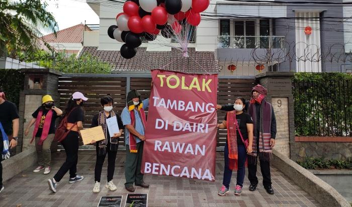 TRIBUN-MEDAN.com, MEDAN - Perwakilan dari warga Dairi yang hadir pada aksi yang dilakukan bersama Perhimpunan Bantuan Hukum dan Advokasi Rakyat Sumatera Utara (BAKUMSU) menggelar aksi didepan Konsulat Jenderal (Konjen) Tiongkok Jalan Wali Kota Nomor 9, Kecamatan Medan Maimun, Kota Medan, Rabu (24/8/2022) siang.