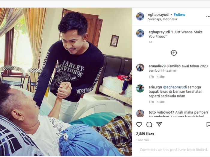 Unggahan Egha itu kemudian dibanjiri doa dari netizen yang mengharap kesembuhan Tukul.