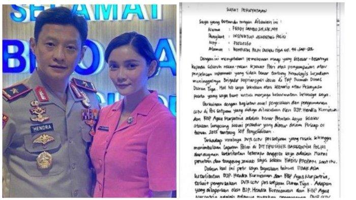 Dalam surat itu, Ferdy Sambo menyebut, Brigjen Hendra Kurniawan yang merupakan suami Seali Syah tidak terlibat perusakan DVR CCTV di pos satpam.