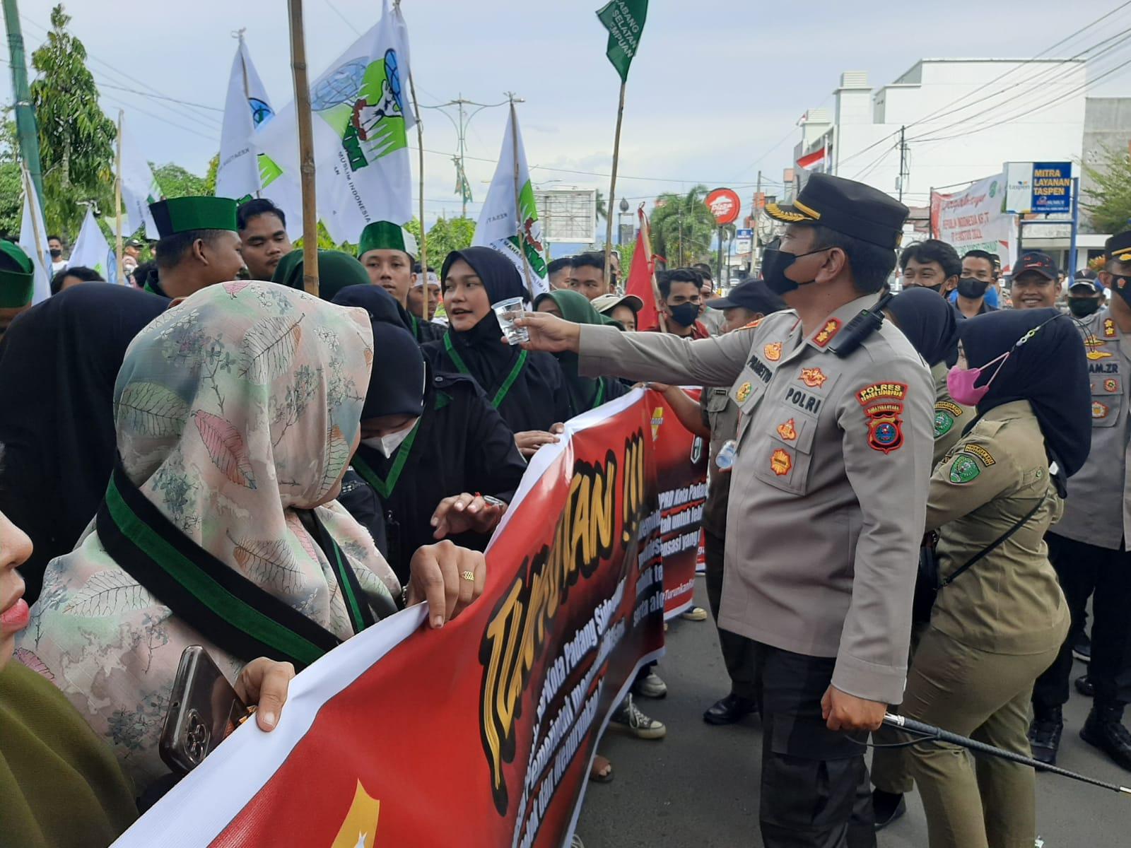 Disela Aksi Mahasiswa, Kapolres Sidimpuan Tak Canggung Bagikan Air Mineral