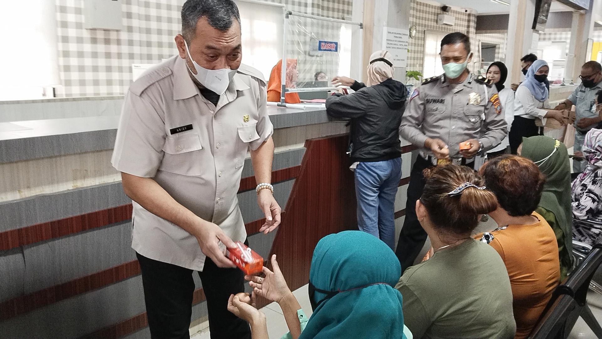 Pemberian telur dan minuman kotak itu diberikan langsung oleh Kepala Unit Pelayanan Teknis (UPT) Pengelolaan Pajak Daerah (PPD) Lubukpakam, Arif Siregar.