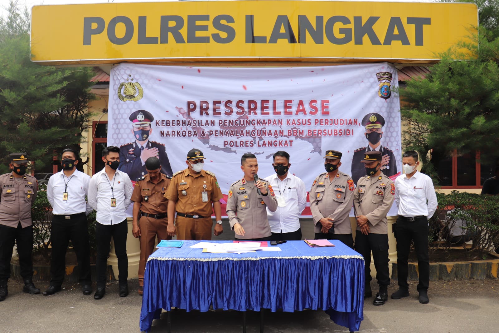 Kegiatan press release dipimpin oleh waka Polres Langkat Kompol Hendri Nupia Dinka Barus .SH.SIK.MH.dihadiri Kasat Narkoba AKP Kusnadi. Kapolsek Padang Tualang AKP Sutrisno Kasi Humas AKP Joko Sumpeno, KBO Sat Reskrim IPDA A. Sirait, Kanit Ekonomi Sat Reskrim IPDA .Ali Asghor .S.Trk.penyidik unit Ekonomi Sat Reskrim, Camat Sawit Seberang, Kades Mekar Sawit.
