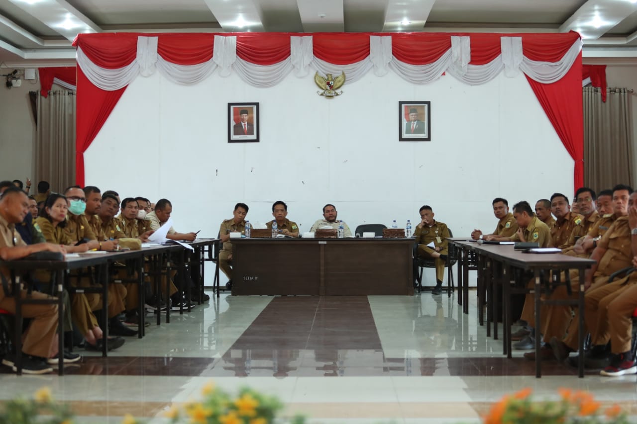 Bupati Franc Bernhard Tumanggor mengadakan Rapat Evaluasi Penyerapan Dana Kredit Usaha Rakyat(KUR) bersama Lembaga Penyedia Layanan KUR, Selasa (6/9/2022). (Diskominfo Pakpak Bharat)