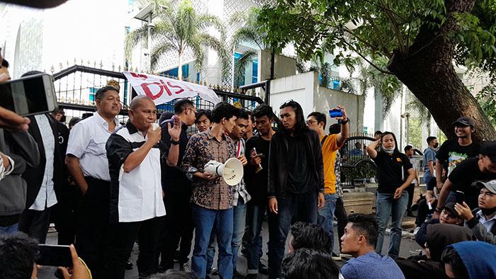 Sebelumnya, massa aksi menuntut Ketua DPRD Sumut Baskami Ginting untuk menemui massa aksi. Namun Baskami dikabarkan tengah memimpin rapat di dalam gedung DPRD Sumut.