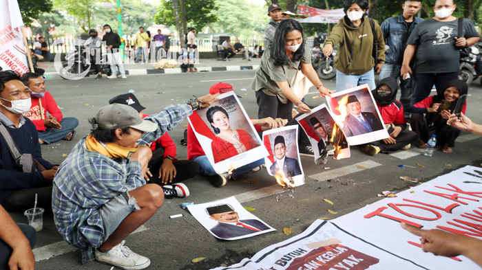 Dalam aksinya, massa tidak hanya membakar poster Puan Maharani, tapi juga sejumlah pejabat lain.
