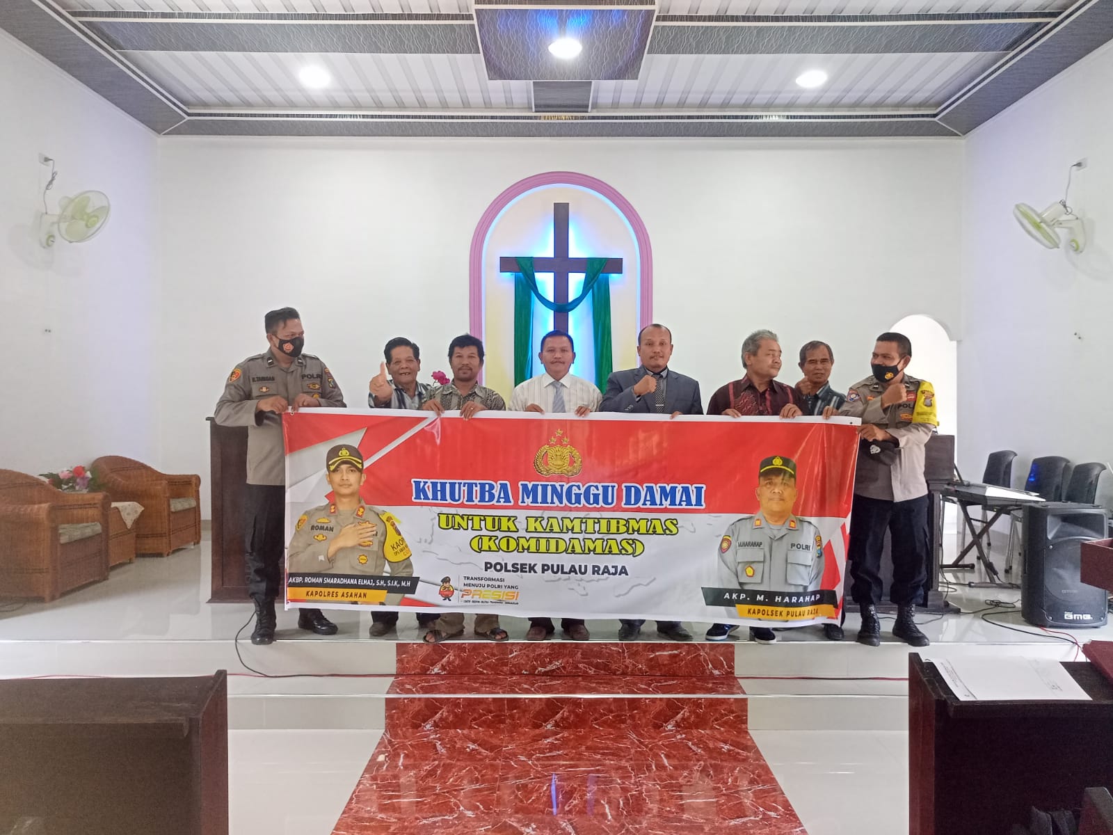 TRIBUN-MEDAN.COM, ASAHAN -Dalam memelihara Kamtibmas yang aman dan kondusif, Polsek Pulau Raja Polres Asahan melaksanakan Gerakan Khotbah Minggu Damai (Komidamas) di Gereja GMI Anugerah Dusun II Desa Pulau Rakyat Tua Kecamatan Pulau rakyat Kabupaten Asahan, Minggu (11/9/2022).