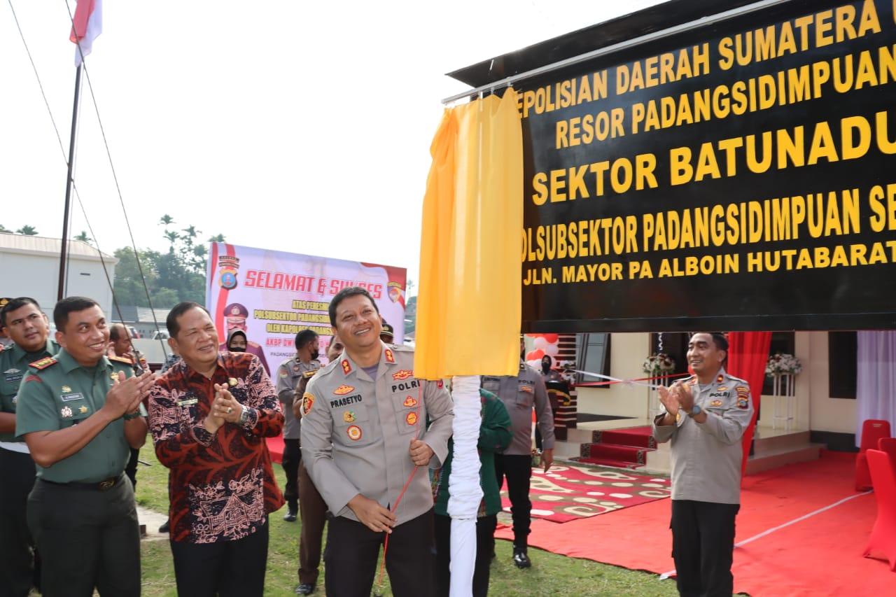 Kapolres Padangsidimpuan AKBP Dwi Prasetyo Wibowo melakukan Peresmian Polsubsektor Padangsidimpuan Selatan yang ditandai dengan Pembukaan Selubung