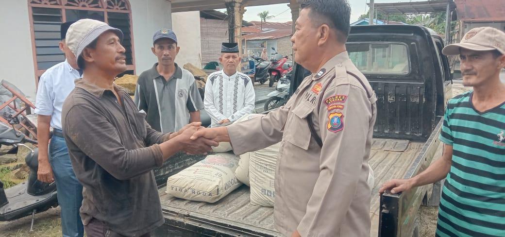 Kapolsek Kota Kisaran Iptu Joy Ananda Putra Sianipar memberikan bantuan 10 sak semen untuk pembangunan masjid Silaturahmi yang berada di Dusun VI