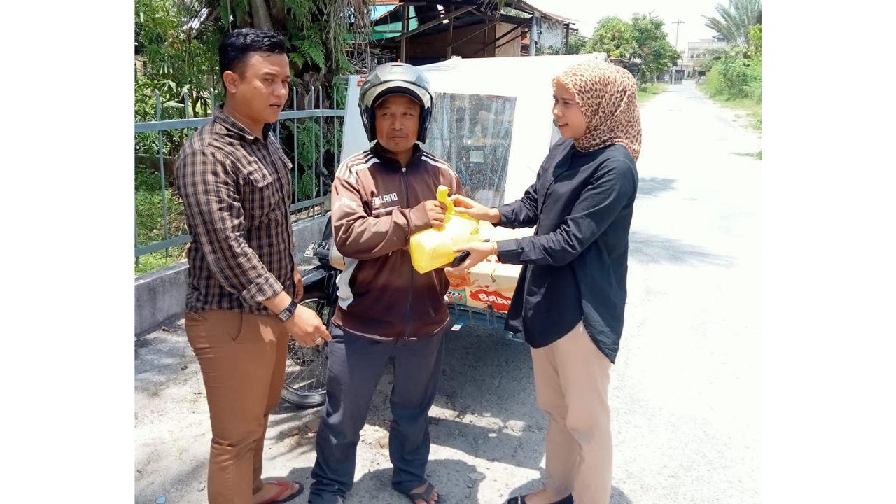 Bansos yang dibagikan Satres Narkoba Polresta Deliserdang berupa 100 paket Minyak Goreng dan Gula Pasir.