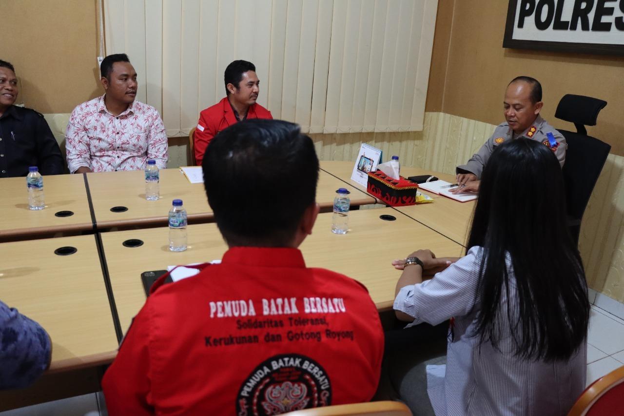 TRIBUN-MEDAN.com, GUNUNGSITOLI - Kapolres Nias AKBP Luthfi didampingi KBO Sat Intelkam Polres Nias Iptu Yafao Lase, menerima audiensi dari pemegang mandat pembentukan DPC Khusus Kepulauan Nias Pemuda Batak Bersatu (PBB) di Ruangan Vidcon Polres Nias Jalan Bhayangkara No 01, Kelurahan Ilir Kota Gunungsitoli, Kamis (6/10/2022).