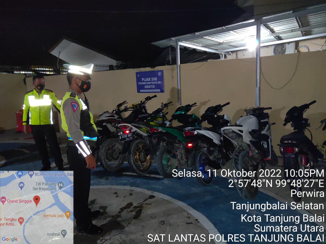 TRIBUN-MEDAN.COM, TANJUNGBALAI -Personil Satuan Lalu Lintas Polres Tanjungbalai melakukan kegiatan penindakan terhadap sepeda motor yang menggunakan knalpot brong yang mengeluarkan kebisingan suara dengan Huntyng sistem, Selasa Tanggal 11 Oktober 2022, sekitar Pukul 21.00 Wib s/d Pukul 23.00 Wib di wilayah hukum Polres Tanjungbalai.