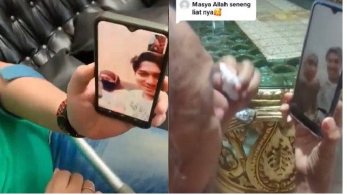 Nenek fans berat Leslar terlihat sedang video call dan terlihat menangis.