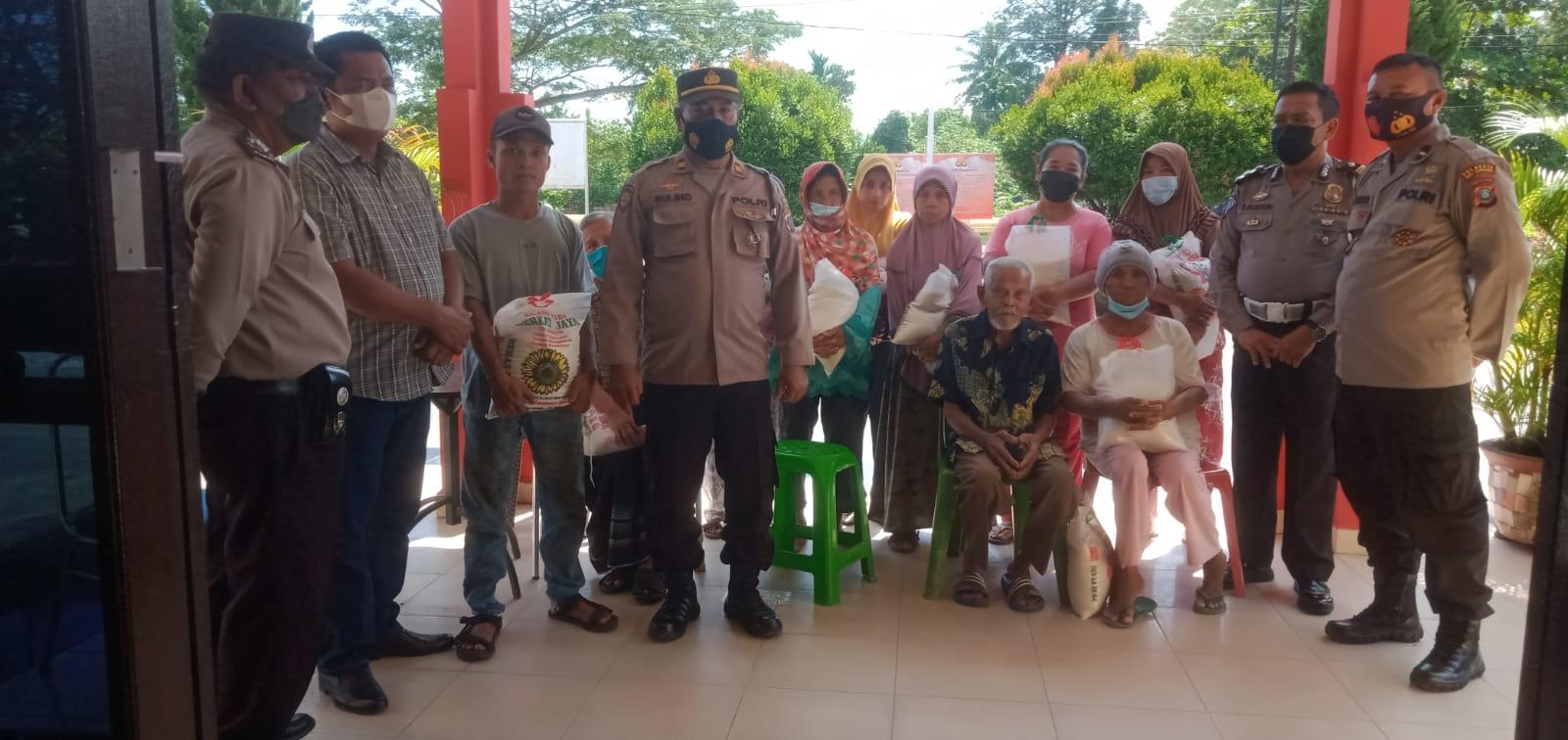 Kapolsek Beringin AKP Doni Simanjuntak beserta anggota membagikan bansos berupa beras kepada masyarakat yang terdampak dari naiknya harga BBM.