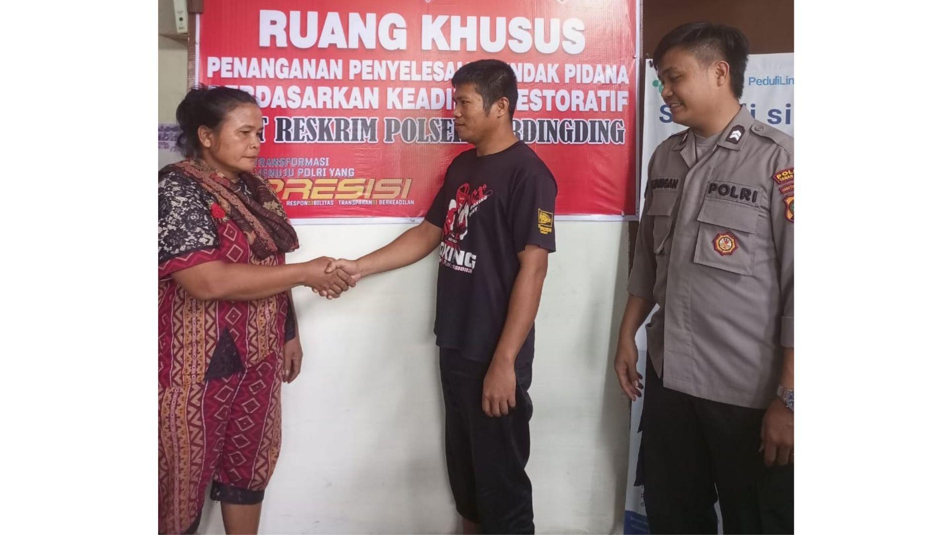 Kapolsek Mardinding Iptu D Tambunan menjelaskan, restorative justice dilakukan berdasarkan perdamaian yang telah terjadi secara musyawarah dan kekeluargaan antara pelaku dengan korban.
