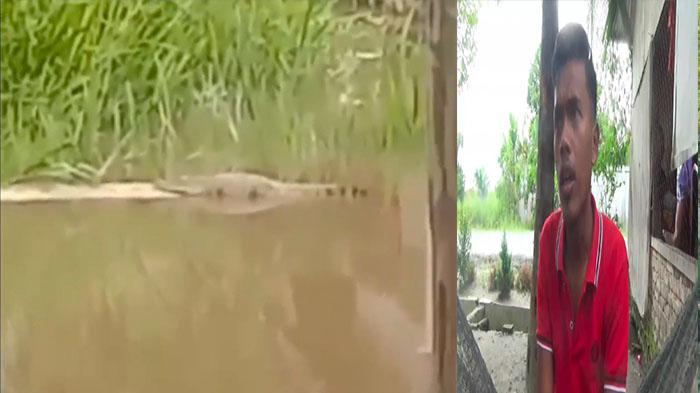 "Saat itu saya sedang hendak mengambil air. Kemudian saya terkejut melihat kok ada yang aneh, saya kira tadinya biawak, ternyata buaya, saya ambil handphone dan saya video. Ada dua buaya," kata Arifin, Jumat (28/10/2022).