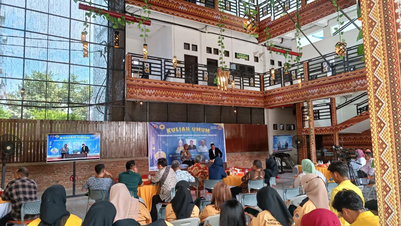 Kuliah umum tersebut membahas tentang penerapan prinsip ekonomi dalam dunia industri.