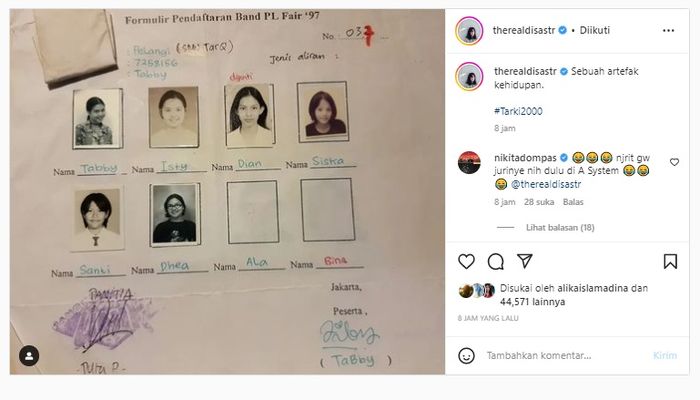 "Sebuah artefak kehidupan #Tarki2000," tulisnya.