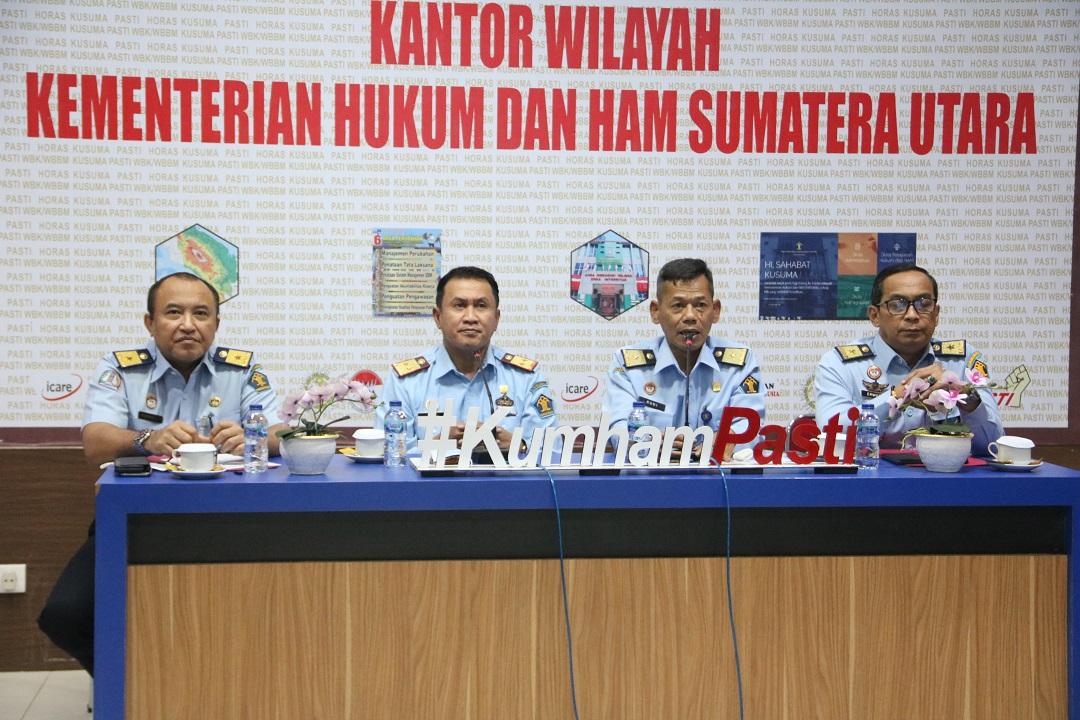 Kegiatan yang dilaksanakan di ruang Saharjo Kanwil Sumut ini kemudian dilanjut dengan arahan dari Kepala Divisi Administrasi, Rudi Hartono, Kepala Divisi Pemasyarakatan, Erwedi Supriyatno, Kepala Divisi Keimigrasian, Ignatius Purwanto, dan Kepala Divisi Pelayanan Hukum dan HAM, Alex Cosmas Pinem.